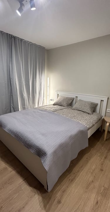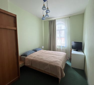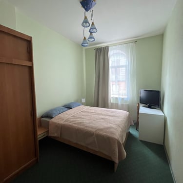 Erdvus 57kv dviejų kambarių butas autentiškame Liepojos senamiesčio pastate, netoli jūros. Nemokamas automobilio parkavimas namo vidiniame kieme. Self check-in.
